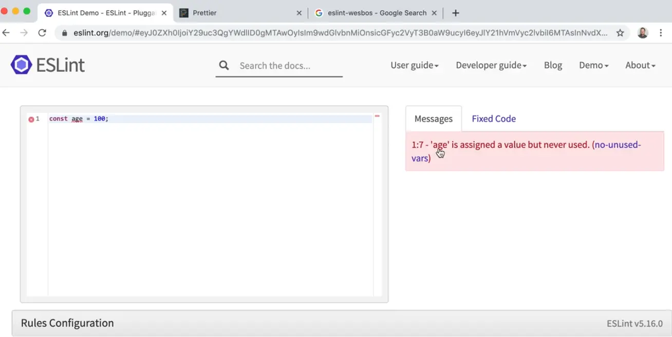 Let's say you add the following code in the ESLint demo page 👇