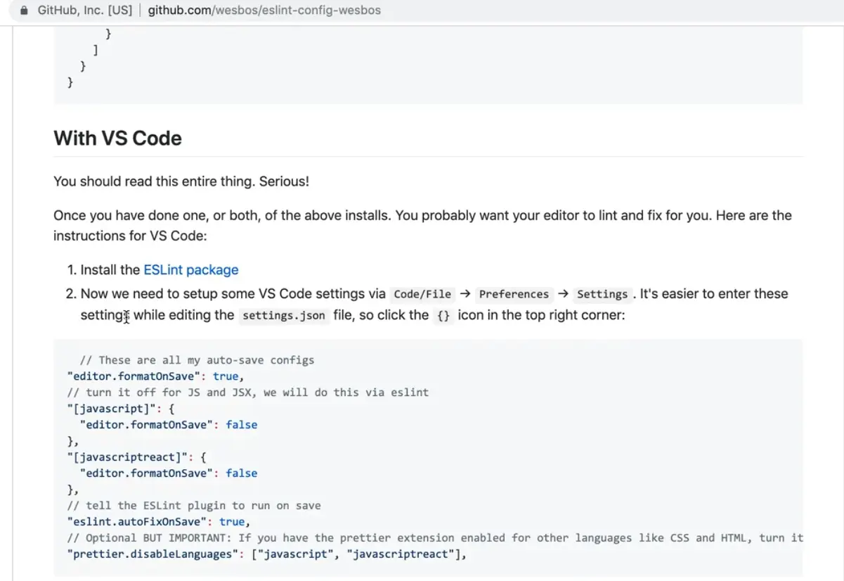 This stuff can get confusing and be a real bummer, so if you get stuck or have trouble, watch the video again and check out the "troubleshooting tips" in the eslint-config-wesbos Github repository.