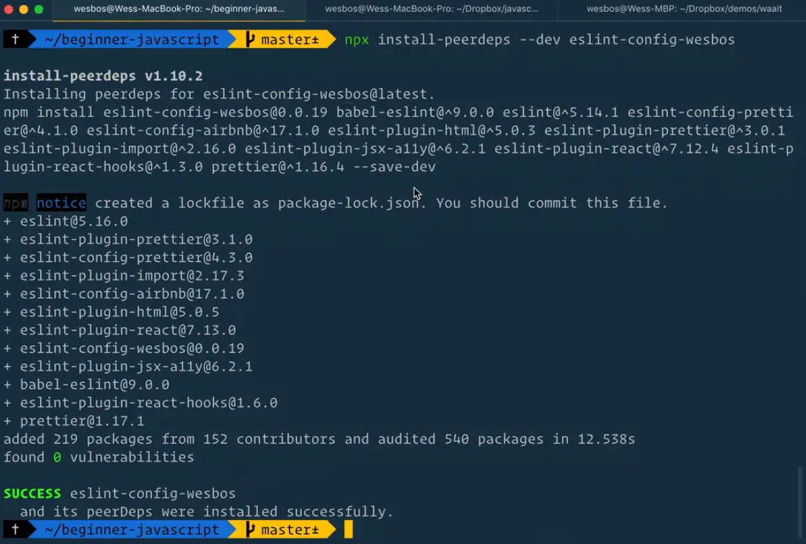 npx install-peerdeps --dev eslint-config-wesbos