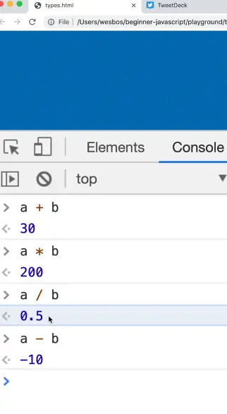 Open types.html in the browser and then open the console and type typeof age and hit enter. The console should return to you "number".