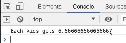 In the console, that evaluates to Each kid gets 6.66666666667 👇