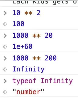 Another thing you should know is JavaScript also has infinity and negative infinity. At the end of the day, there is a max that computers can calculate with numbers. If you try to calculate something that is too high, it will return to you infinity or negative infinity.