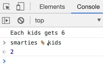 After the smarties have been evenly distributed between the kids, there are 2 smarties left over. The modulo operator % will tell you how many are left after you evenly divide them.