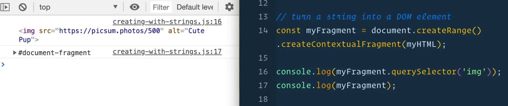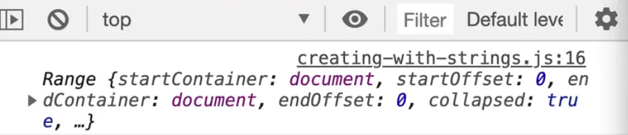 A range is essentially a collection of elements or part of HTML that we can then work with. That is exactly what we want, we want to take the myHTML string and create a couple of fragments.