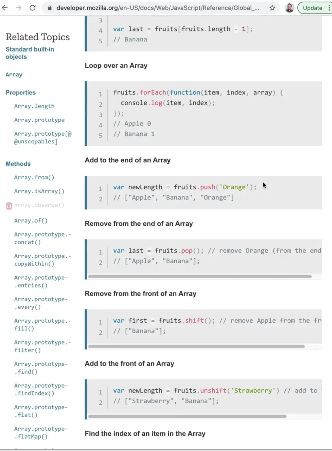 When you open it, you will see all the array methods in the documentation, along the sidebar.
