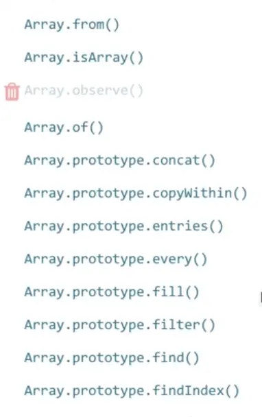 All the rest of the methods have Array.prototype and then the method instead of calling the method directly on Array.