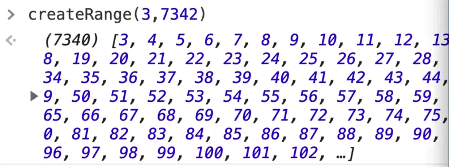 Let's refresh the page, open the console and try with a smaller number as shown below.