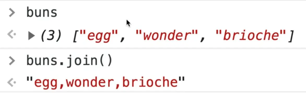 Open up the HTML page in a browser and open the console. Type in buns to see what we are working with and then call buns.join().