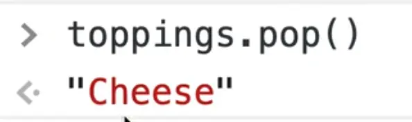 If you call toppings.pop(), it will return to us the last item in the array, which is "Cheese".