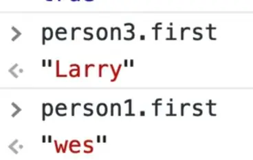 Now if you go ahead and update person3's name as demonstrated below, what will you see in the console when you log person3.first? 👇