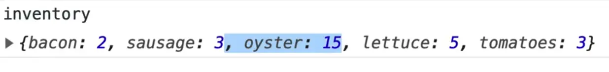 Let's say you added oyster to meatInventory AND veggieInventory like so 👇