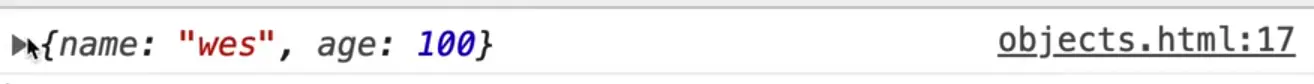 For example, is you add this line person.age = 50; and then refresh the HTML page and look at the console, you will see that age is now set to 50 even though when creating the object, we set it to the variable age which was 100.