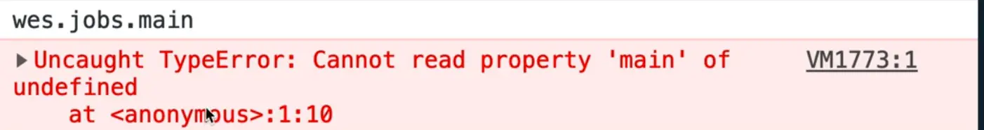 Because wes.jobs is undefined, there are no properties that live inside of that.