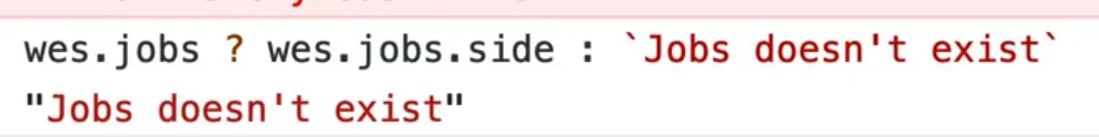 wes.jobs ? wes.jobs.side : 'Jobs doesn't exist`;