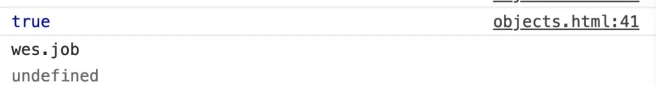 Sometimes you will also see people setting values to be null or undefined, for example wes.age = undefined; or wes.age = null;.