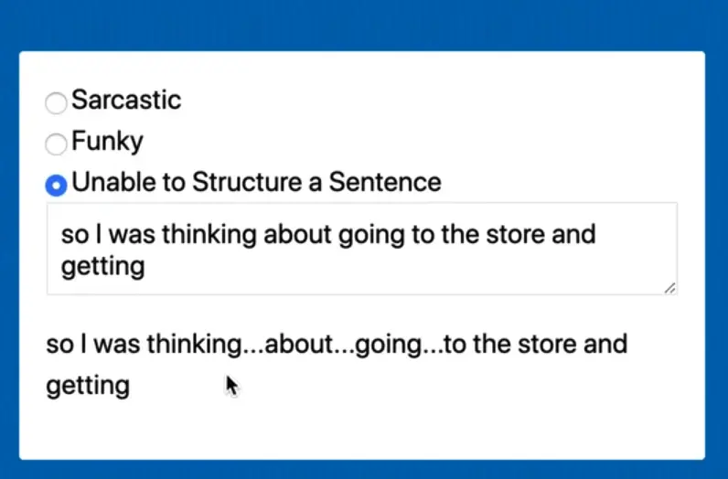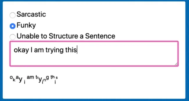 Now if you type in the textarea and select the sarcastic filter, you should see something like this 👇