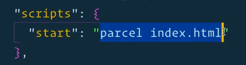 You will notice that we have 2 dev dependencies, one for Sass and one for Parcel. When we type npm start, that will run the parcel index.html command.