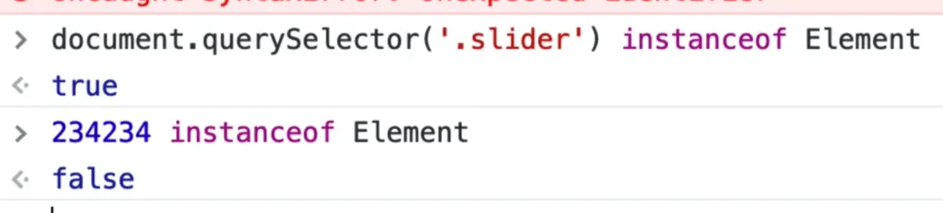 This means that we can use document instanceof Element to check whether something is an instance of the Element base class.