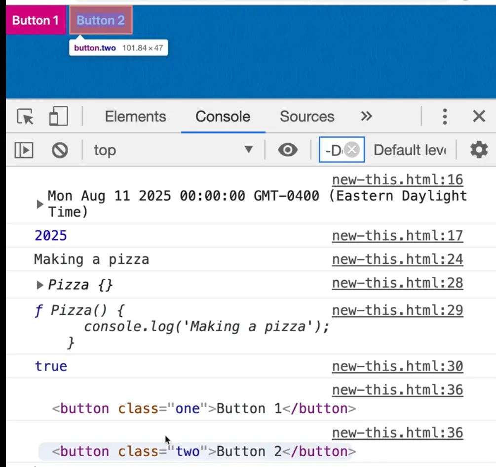 Now when we go and click on each button, the this keyword will be equal to each button that was clicked.
