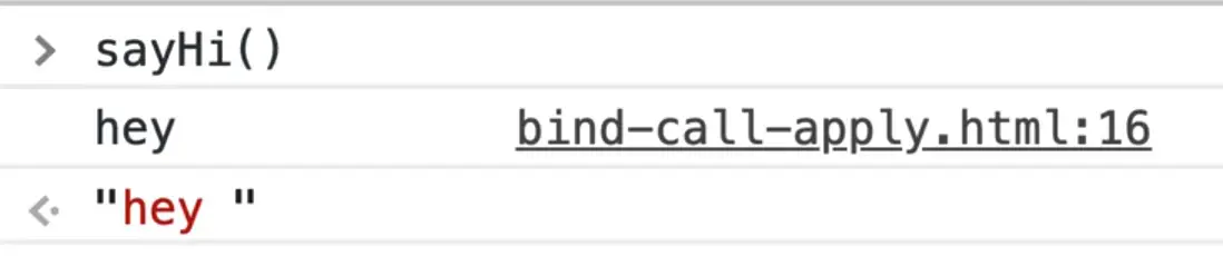 The code above tells JavaScript to call a function sayHi and when it's called, it's this keyword is equal to whatever we pass to the bind() method.