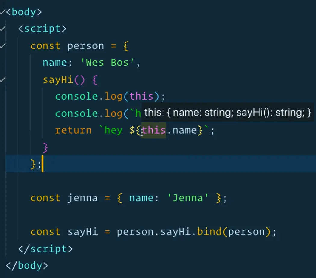 const sayHi = person.sayHi.bind(person);