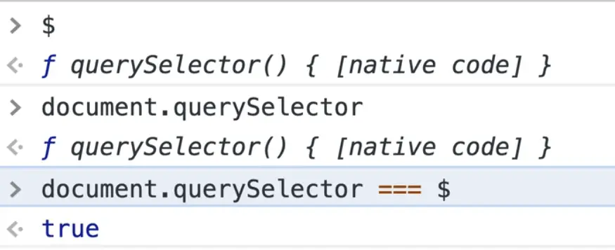 Now if you refresh the page, open the dev tools console and type $ you will see that it is the querySelector function.