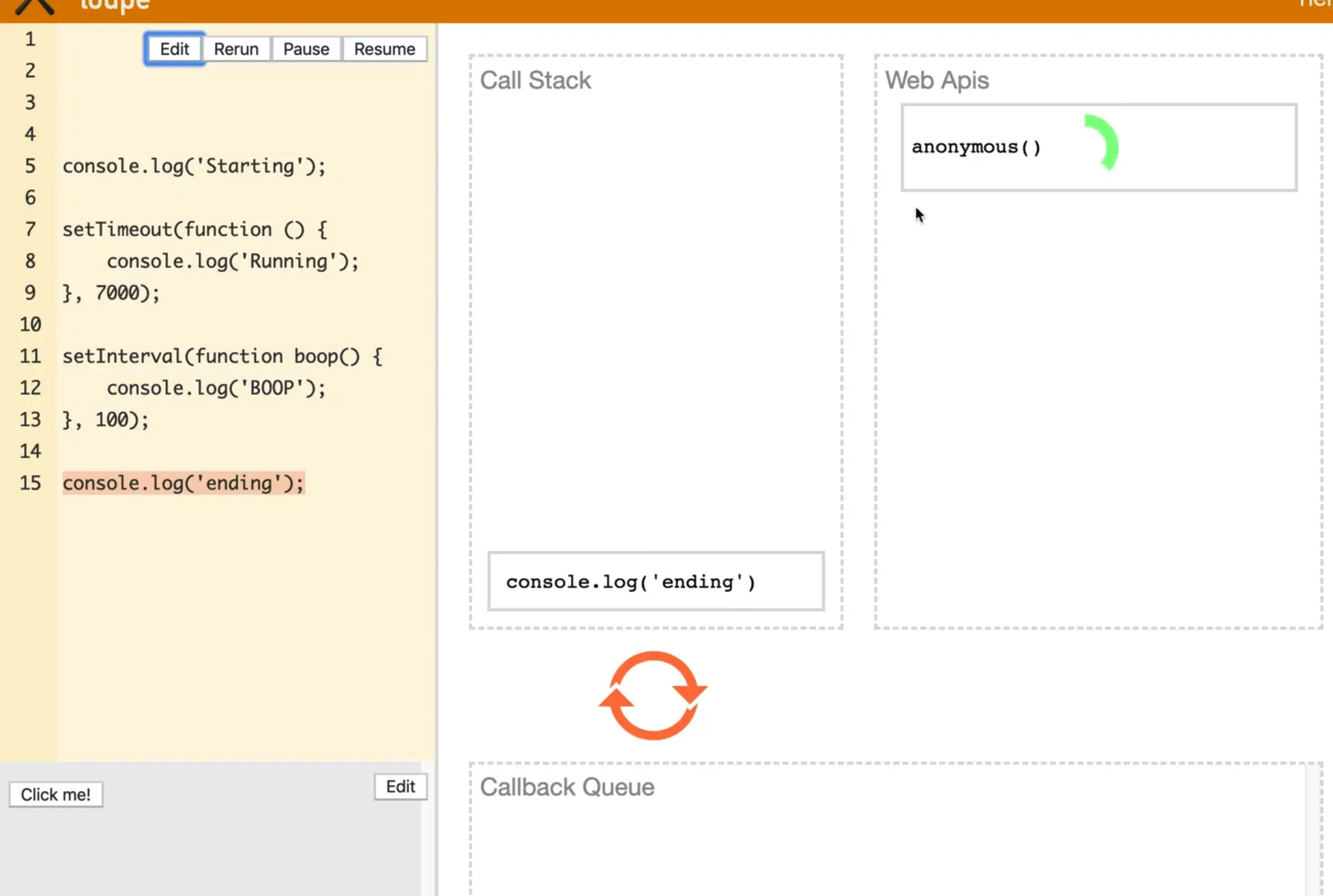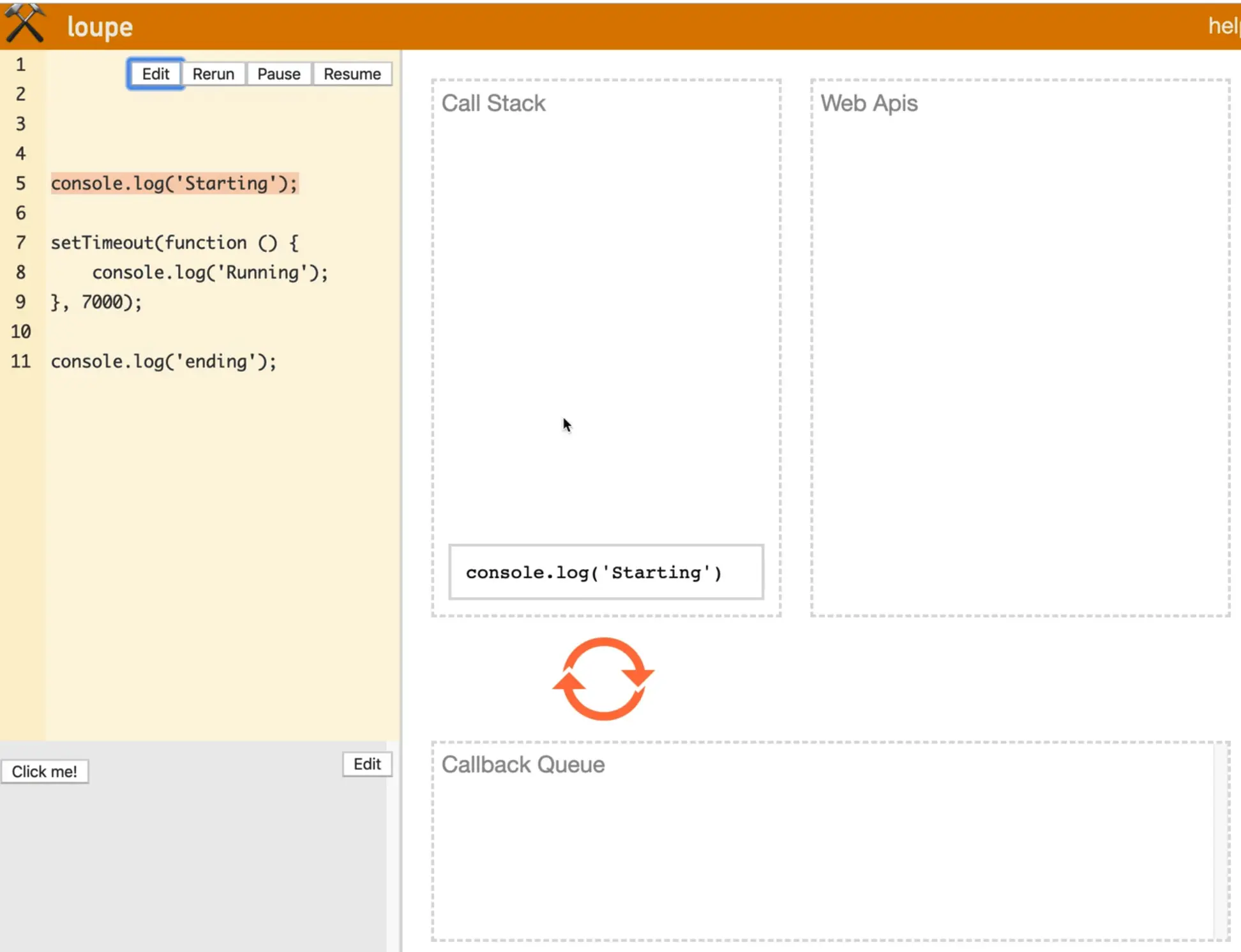 Philip Roberts also built this cool little tool called loupe which will help us visualize the callstack.