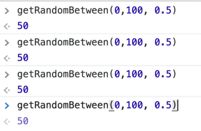 To use this in a production application, you could do getRandomBetween(0, 100, Math.random()) and pass the random number using Math.random().
