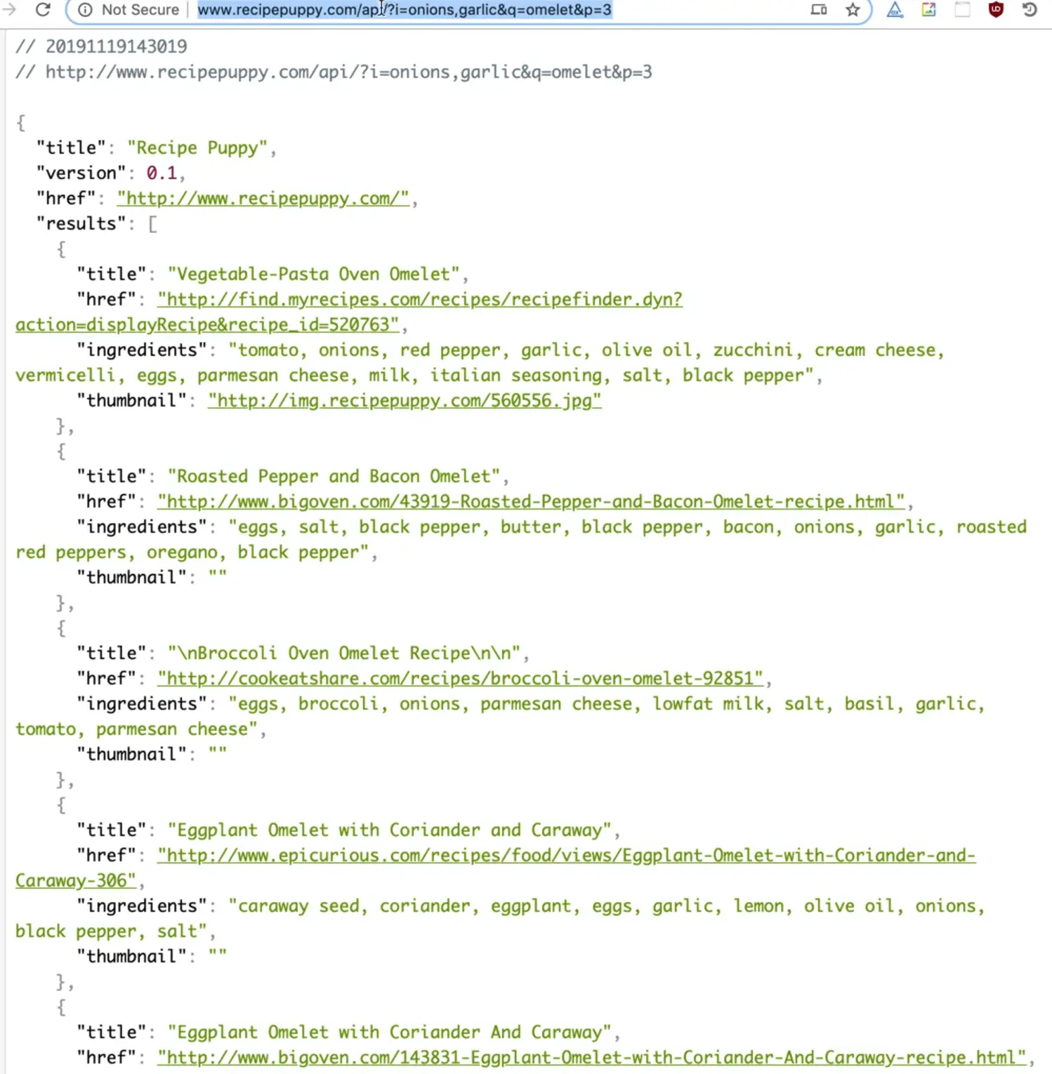 http://www.recipepuppy.com/api/?i=onions,garlic&q=omelet&p=3