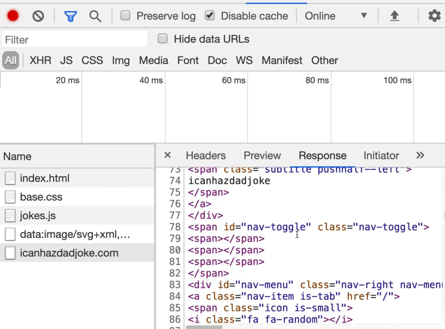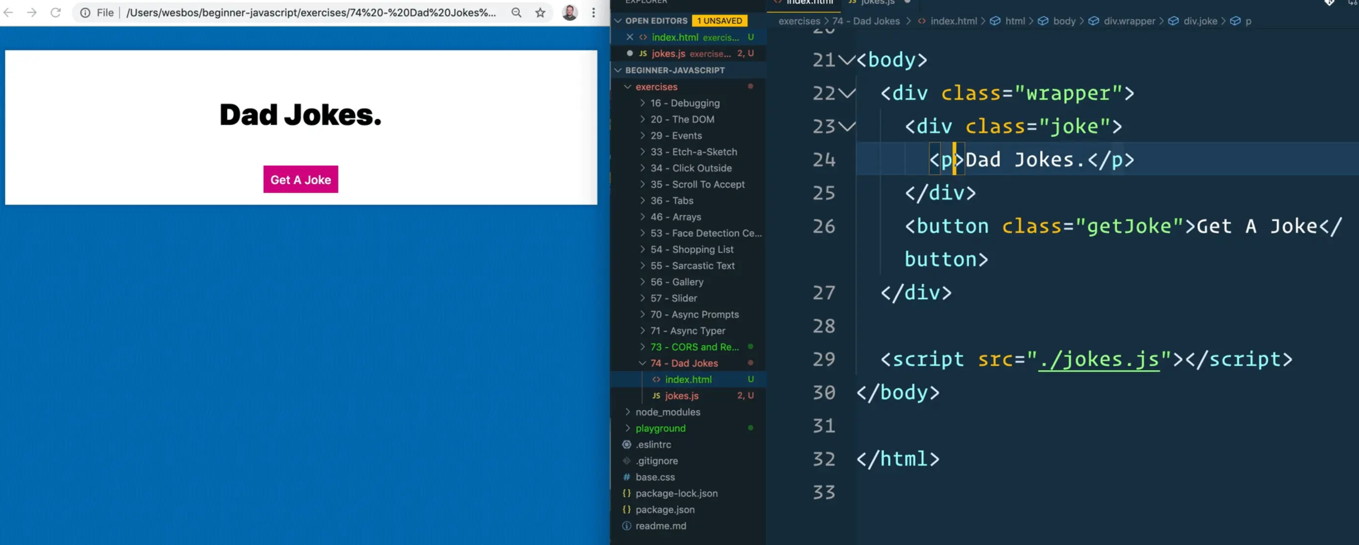 Navigate to the exercises/76 - Dad Jokes/ directory and open up index.html.