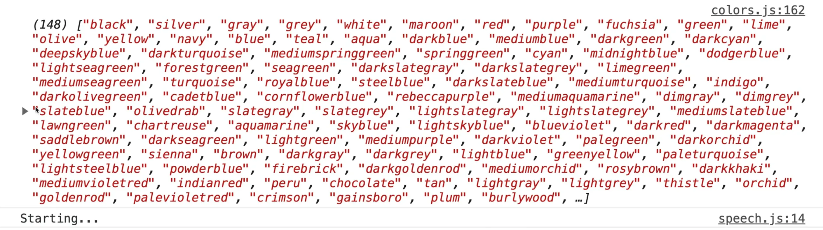 Next, we will write a function to display the colors within speech.js.