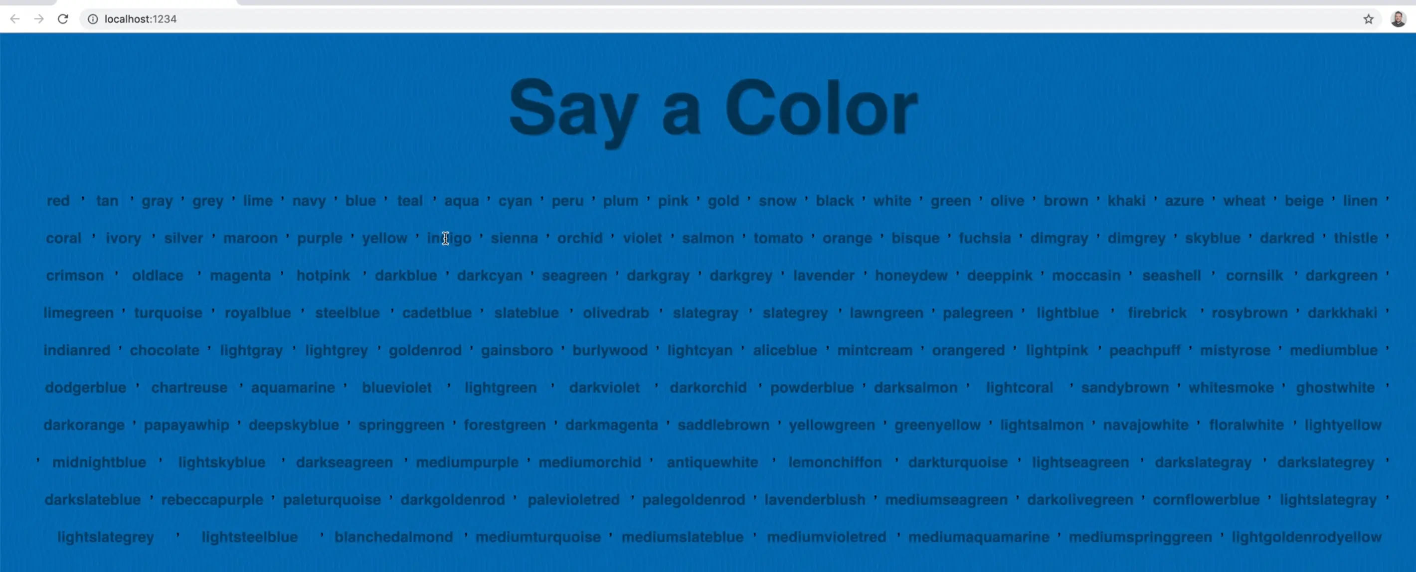 The way it will work is when you say a colour, the background colour of the website should change to reflect that.