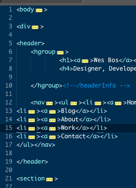 Unfortunately, collapsing of code in sublime text isn't exactly the same as textmate, so you dont get the little arrows in the sidebar. The code is also folded into a single character which makes it easy to delete an entire block of folded code without noticing you have done so. This is the first iteration of code folding in sublime text 2, so I'm sure it will only get better. With those cautions in mind lets take a look at how to work code folding in Sublime.